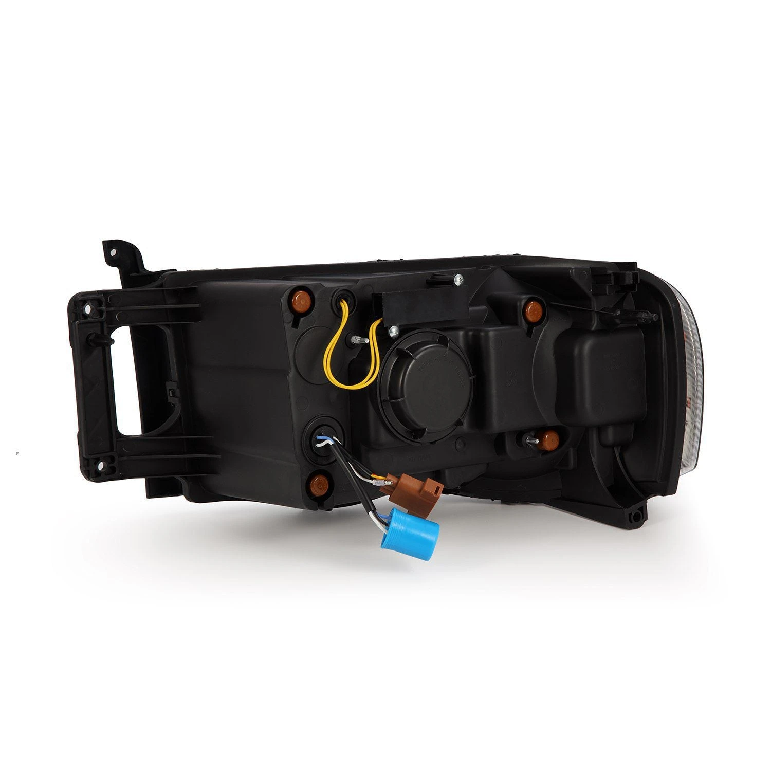 Introducing our Dodge Ram PRO-Series projector headlights, crafted with design inspiration from the headlights of 5th generation Dodge Ram and tailored for the 3rd generation Ram. These headlights feature top and bottom DRL light tubes in white LED, serving also as amber sequential turn signal lights. The middle showcases a dual projector design, where the inner projector provides dual beam output for high and low beam functionality. Notably, the outer projector is dedicated solely to DRL functionality, illuminating with a warm white color output alongside low beam activation. Powered by H7 halogen bulbs, both low and high beam functions deliver reliable performance. Elevate your 3rd gen Dodge Ram with our Dodge Ram PRO-Series projector headlights, combining sleek design with functional versatility.