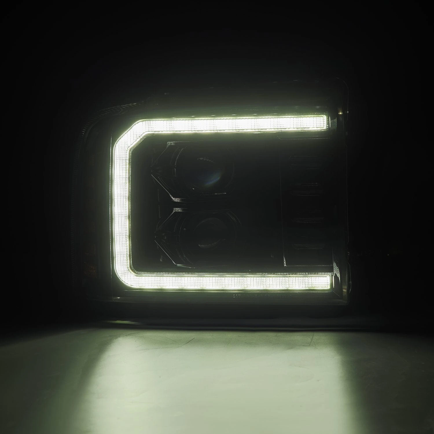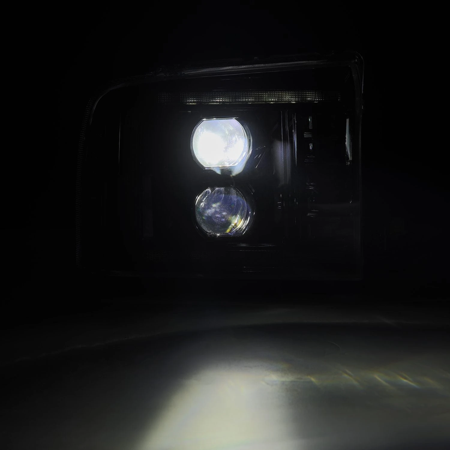 Additionally, our 1st gen Ford Super Duty LUXX-Series projector headlights come equipped with an activation light feature, serving as a running light when you unlock your 1st gen Super Duty. The top projector offers dual beam output for both low and high beam functionality, while the bottom projector serves as a DRL and is not the main light output. These headlights utilize LED chips developed in our own factory, ensuring reliable performance and superior illumination. Elevate your 1st gen Super Duty with our 1st gen Ford Super Duty LUXX-Series projector headlights, combining advanced technology with sleek design for an enhanced driving experience.
