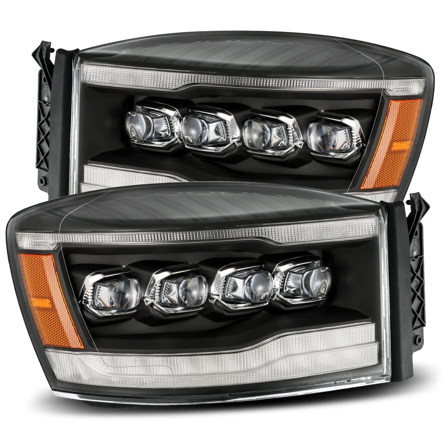 These 3rd gen Dodge Ram NOVA-Series projector headlights draw their design inspiration from the 5th generation Ram trucks, seamlessly adapted for the 3rd generation Ram models. Featuring top and bottom light tubes serving as DRL light bars in white LED, the bottom tube also functions as a sequential turn signal light with amber LED illumination. At the heart of these headlights is our signature NOVA LED look with quad projectors.