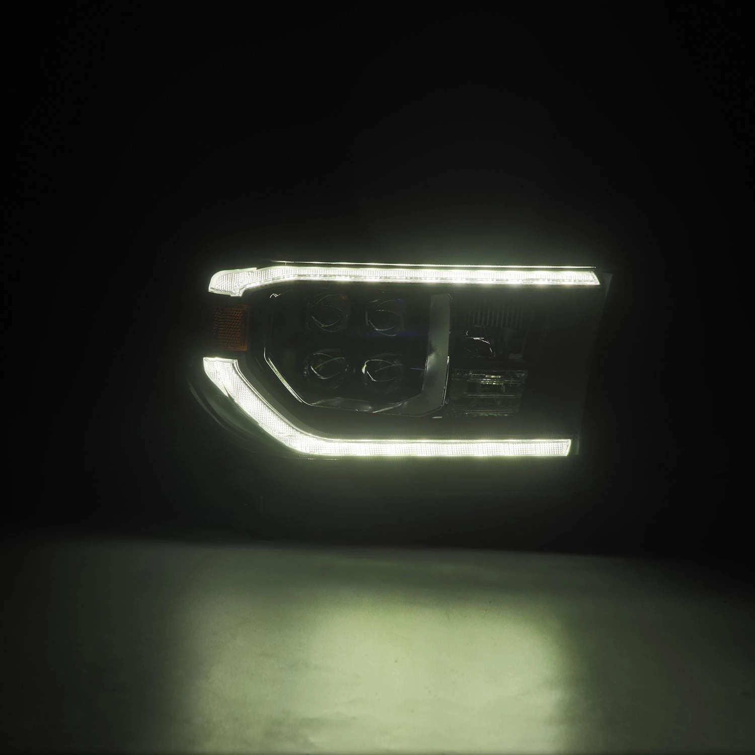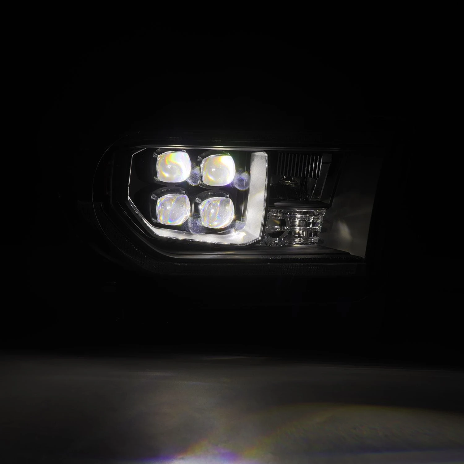 Crafted with precision and style, our 2nd gen Toyota Tundra/Sequoia NOVA-series headlights draw inspiration from the sophisticated design of the 2nd gen Tundra TRD LED headlights. Featuring a striking LED tube as DRL and sequential turn signal surrounding the projector, these headlights enhance both visibility and aesthetics on the road.