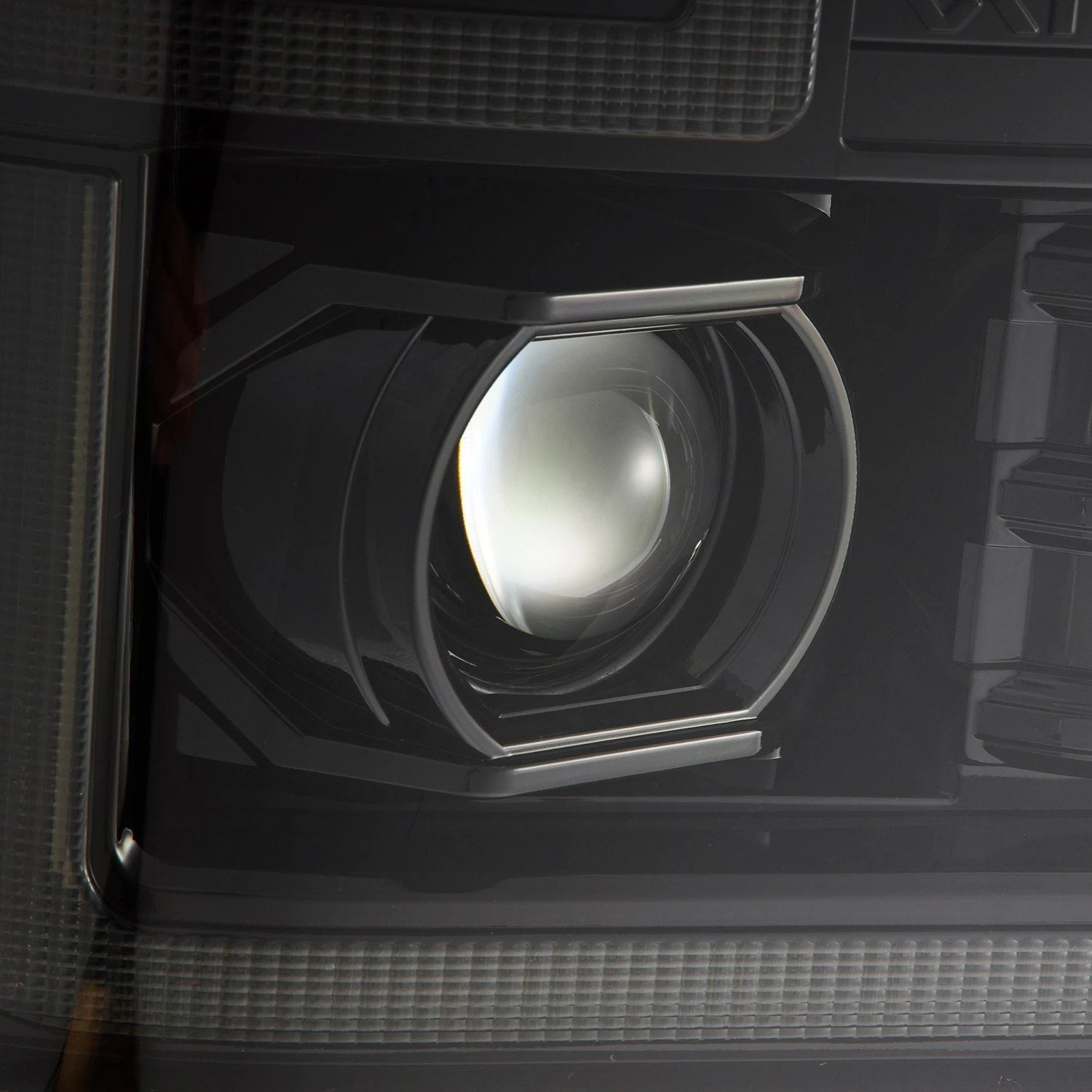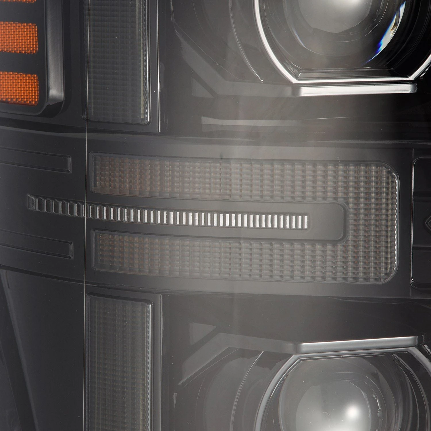For the 2nd gen Ford Super Duty LUXX-series projector headlights, we drew inspiration from the 4th gen Super Duty aesthetics, adapting them seamlessly to the 2nd gen Super Duty model. A switchback LED light tube surrounds the headlights, serving as both a DRL and sequential turn signal for enhanced visibility and style.