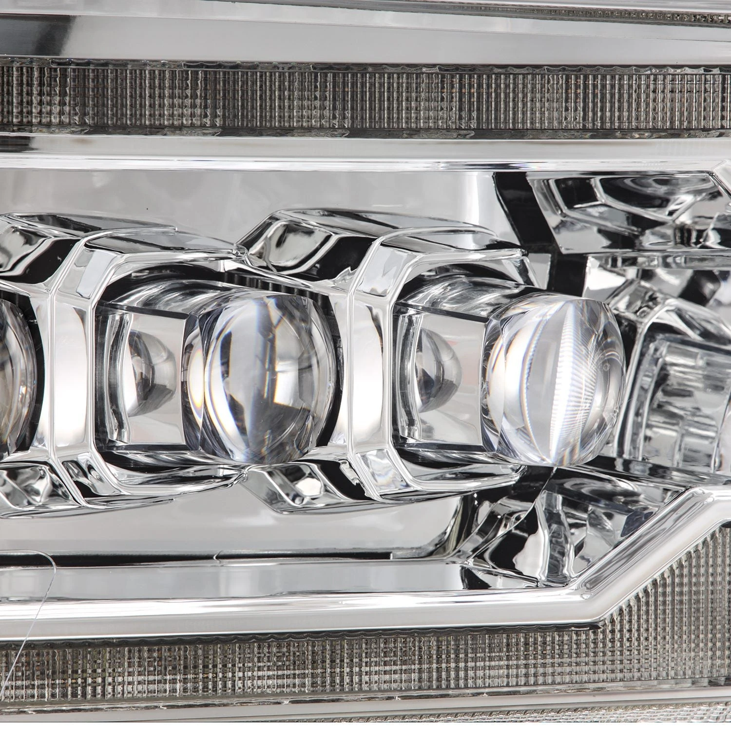 The 4th gen Ram MKII NOVA-series projector headlights draw inspiration from the 5th generation Ram 2500 trucks and are tailored for the 4th generation Ram. These headlights feature white DRL and sequential turn signal lights at the top and middle DRL bar, with the bottom section equipped with amber LED sequential turn signal lights. Additionally, they include an activation light sequence that activates when you unlock your vehicle. The distinctive NOVA LED design includes quad projectors, with the inner projector dedicated to high beam functionality and the three outer projectors serving as low beams. These headlights boast high-power LEDs delivering a 6000K light output for exceptional projection. Elevate your Ram’s appearance and functionality with these 4th gen Ram MKII NOVA-series projector headlights, designed to deliver optimal performance and style on the road.