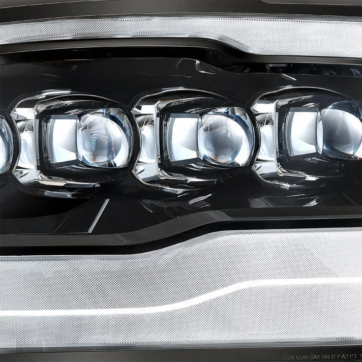 Drawing inspiration from the 5th generation Ram trucks, we’ve crafted the 4th gen Ram NOVA-Series projector headlights for the 4th generation Ram. At the top, you’ll find a striking DRL light bar illuminated in white LED, while the bottom section features the signal light adorned with amber LEDs. The centerpiece of these headlights is the signature NOVA LED design, showcasing quad projectors. The inner projector is dedicated to high beam functionality, while the three outer projectors serve as the source for low beam illumination. With high-power LEDs producing a 6000K light output, these headlights deliver exceptional projection and visibility on the road. Elevate your Ram’s appearance and functionality with these 4th gen Ram NOVA-Series projector headlights, designed to deliver optimal performance and style on the road.