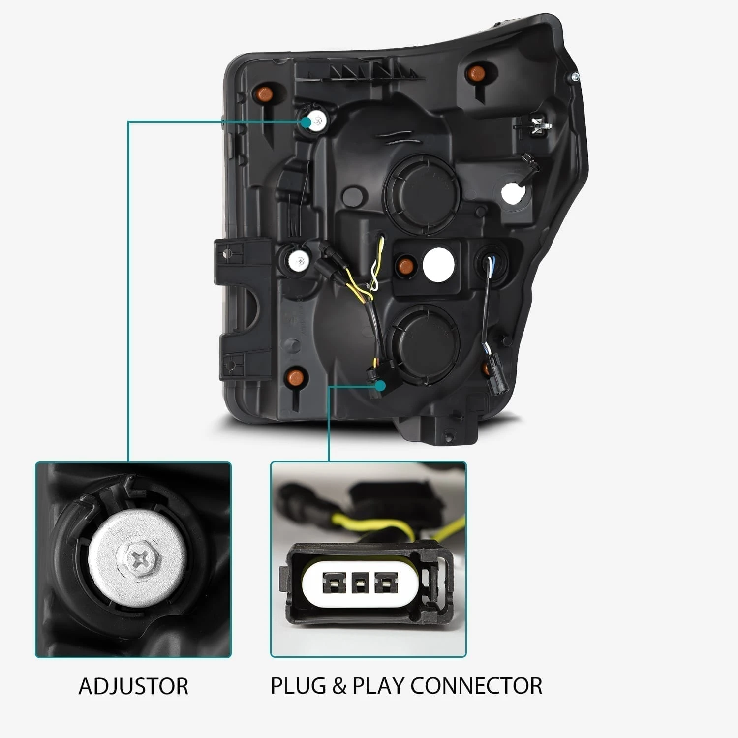 At the forefront of our 3rd gen Ford Super Duty LUXX-Series projector headlights is the switchback LED light tube, which surrounds the main projector and serves as both a daytime running light (DRL) and a sequential turn signal. This innovative design not only enhances the visual appeal of your Super Duty but also improves safety by ensuring that your intentions are clearly communicated to other drivers on the road.