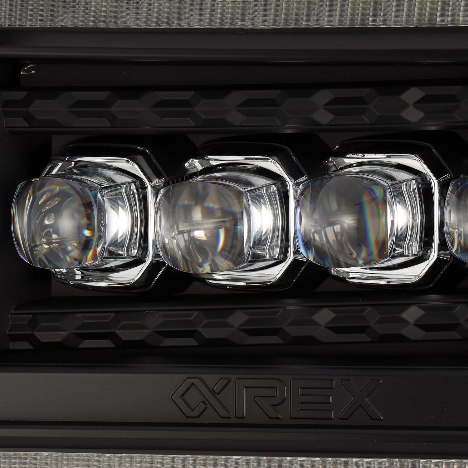 Featuring four of our patented ice-cube 3D projectors, these headlights create a straight pattern of light sources that ensure optimal illumination and visibility on the road. The outer three projectors are dedicated to low beam functionality, while the inner projector serves as the high beam, providing versatile lighting options to suit varying driving conditions.