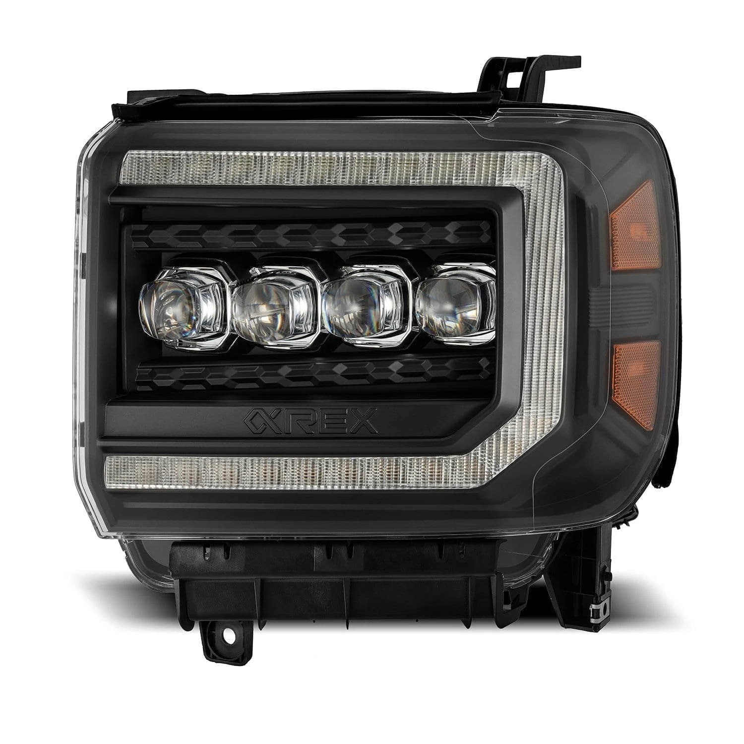 Our 4th gen GMC Sierra NOVA-series projector headlights also feature an activation light feature, which illuminates the headlights in a distinctive sequence when you unlock your Sierra, adding a touch of sophistication to your vehicle’s exterior.