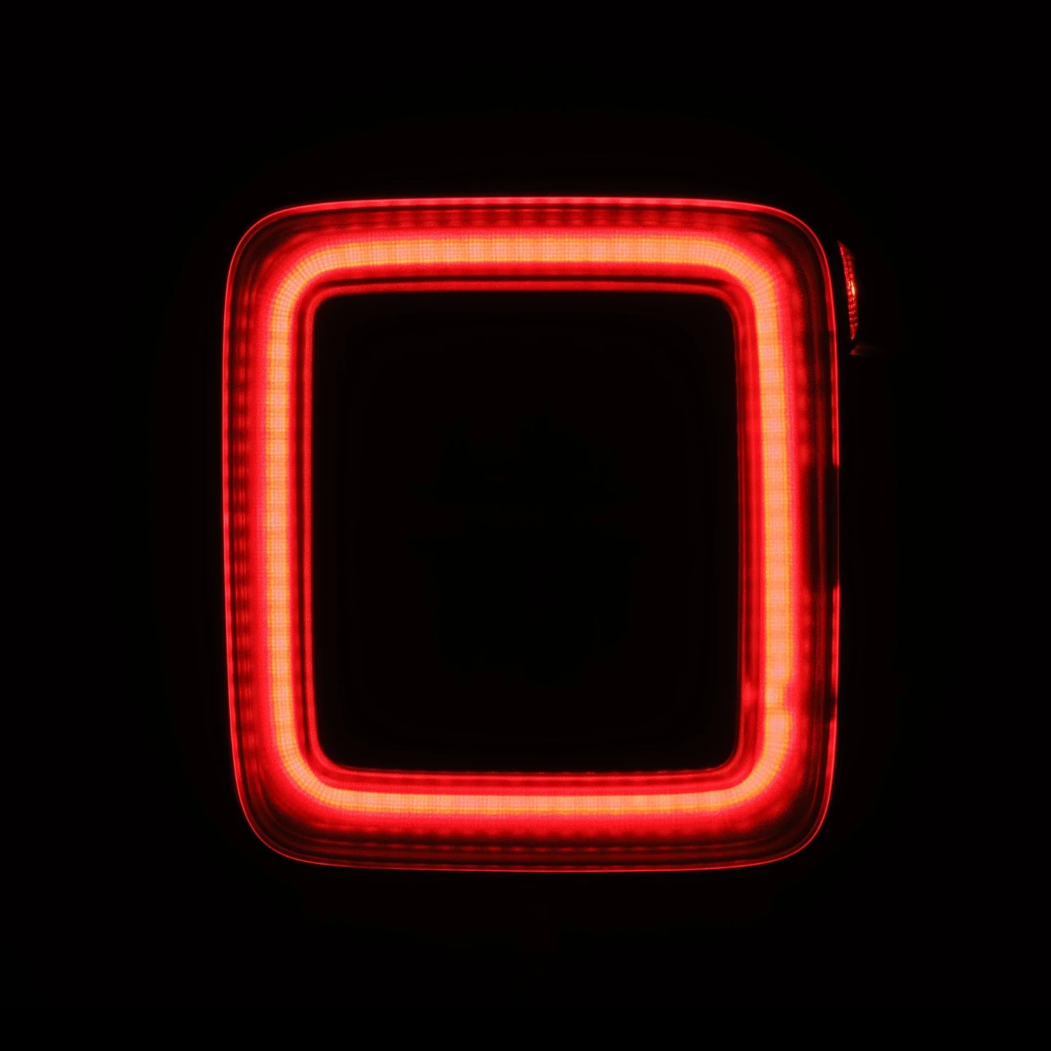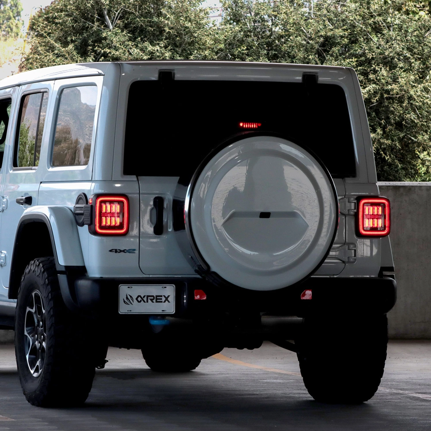 Introducing the Jeep Wrangler JL NOVA-series Prismatic LED tail lights, our pioneering entry into NOVA-Series Prismatic tail lights with prism optics technology. These Jeep Wrangler JL NOVA-series Prismatic LED tail lights showcase 8 trapezoidal prisms. The top 4 prisms utilize red LEDs for braking, while the bottom 4 prisms combine red brake LEDs with white reverse LEDs for enhanced visibility. Nestled between these prisms is a diffuser lens light tube, emitting an amber LED sequential turn signal. A standout LED tube surrounds the tail lights, creating a 3D effect and illuminating as a parking light. Unique to AlphaRex, these Jeep Wrangler JL NOVA-series Prismatic LED tail lights feature our signature activation light sequence when the parking lights are turned on, adding a distinctive touch to your Wrangler JL. Upgrade to our Jeep Wrangler JL NOVA-series Prismatic LED tail lights for a blend of sophistication and functionality.