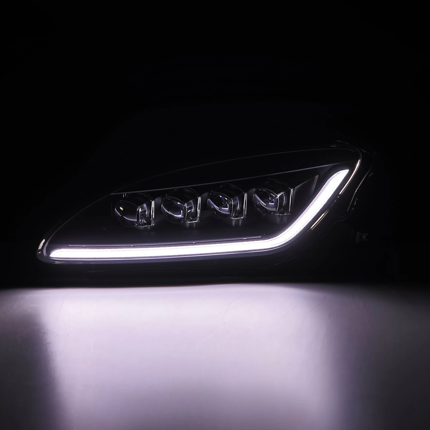 In crafting our Honda S2000 AP1/AP2 headlights, we pursued two distinct design approaches: a bold innovation for the NOVA-Series and a subtle yet original look for the LUXX-Series. For these Honda S2000 AP1/AP2 NOVA-Series headlights, we introduced our signature 3D ice-cube quad-projector design, enhanced by a subtle LED tube at the bottom offering selectable white or amber DRL and sequential turn signal in amber. This LED tube also features our unique activation light feature, presenting a captivating startup sequence upon engine ignition.