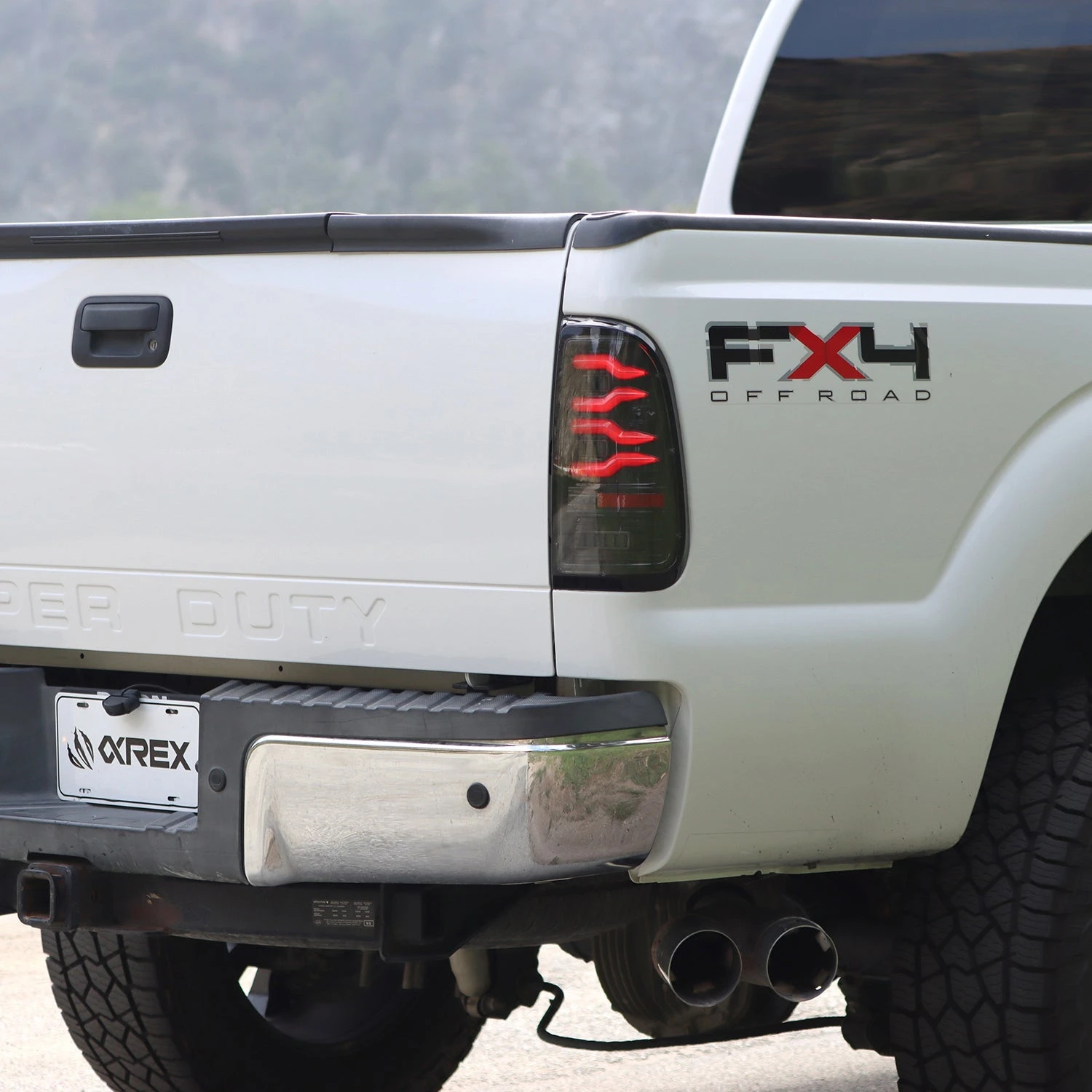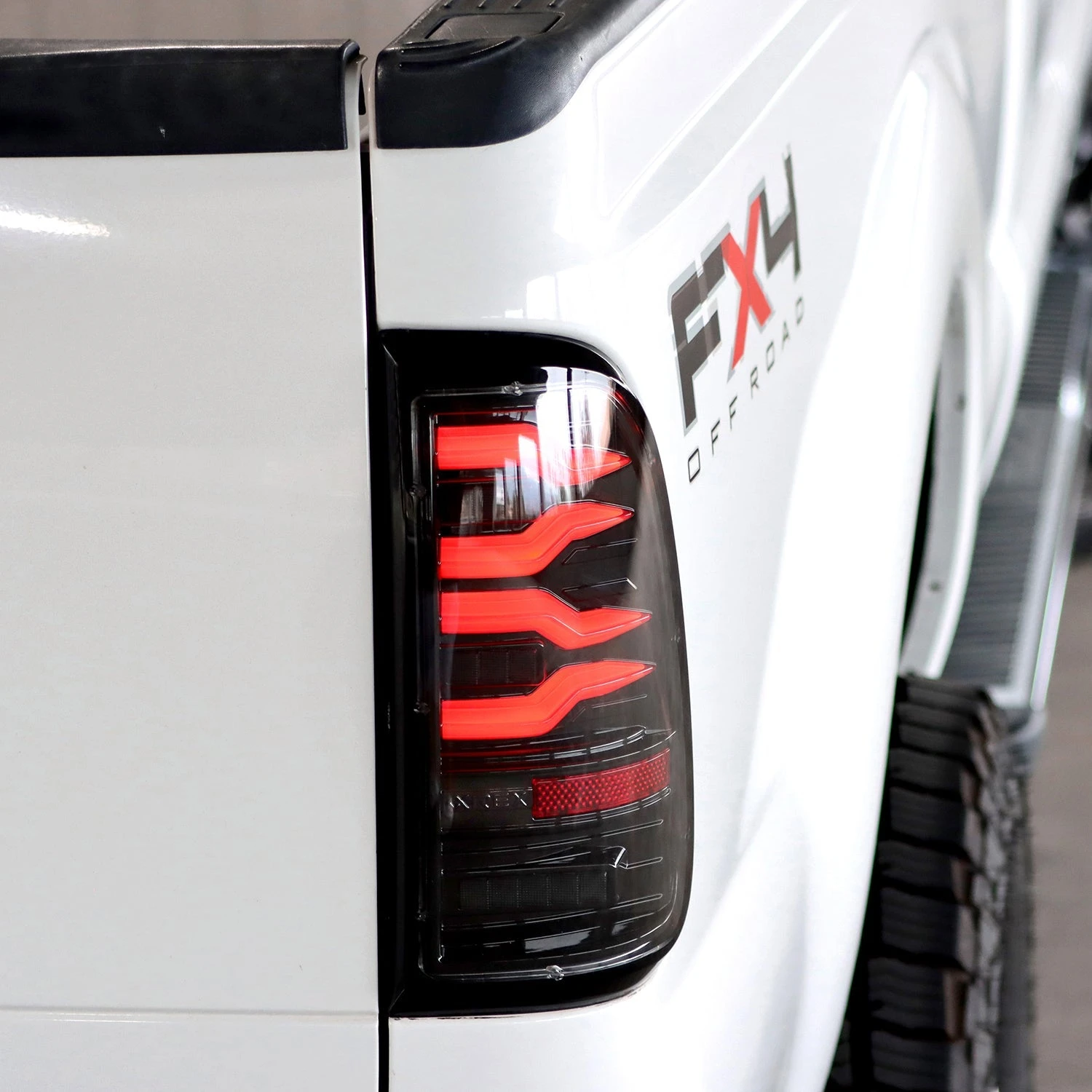 The 10th gen Ford F150/1st to 3rd gen Super Duty LUXX-Series LED tail lights are designed with four LED tubes, offering red LED illumination for parking, brake, and sequential turn signal lights. To enhance visibility during the day, diffuser lenses with switchable LED are integrated between the light tubes, providing a clearer indication. These 10th gen Ford F150/1st to 3rd gen Super Duty LUXX-Series LED tail lights also feature our signature activation light feature, offering a distinctive sequence upon activating your parking lights, adding a unique style to your F150 and Super Duty. Elevate your F150/Super Duty with these 10th gen Ford F150/1st to 3rd gen Super Duty LUXX-Series LED tail lights, combining style and functionality for an enhanced driving experience.